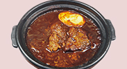 14種類のスパイスと2種類のカレー粉で作られた自家製ルゥと大量のあめ色玉ねぎ、8時間かけて煮込んだとろとろの牛すじを合わせた牛すじ煮込みカレーが自慢のカレー専門店です。